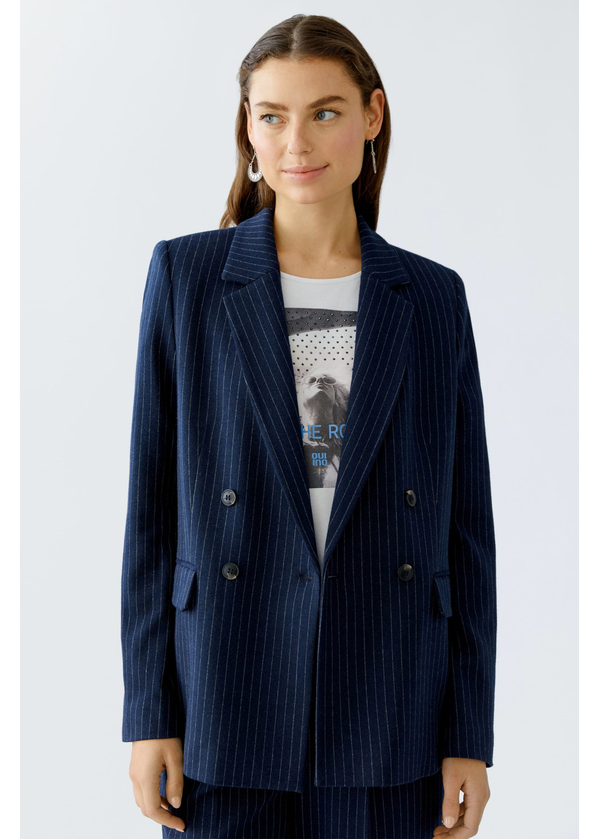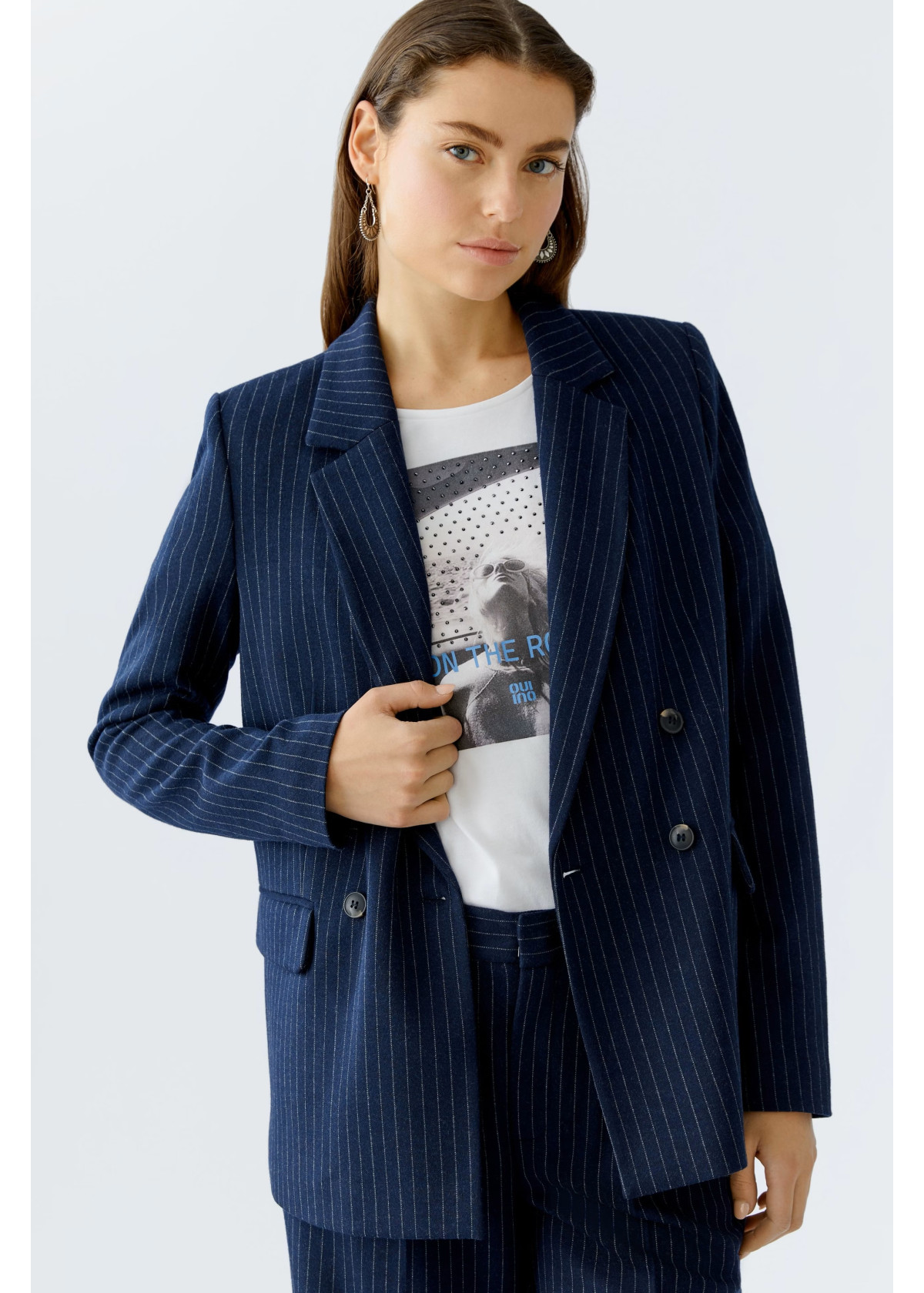 Punto de punto suave con raya diplomática Corte casual, largo normal Cuello clásico con solapa y diseño cruzado Bolsillos planos Con hombreras Parcialmente forrado, con ribete en la espalda