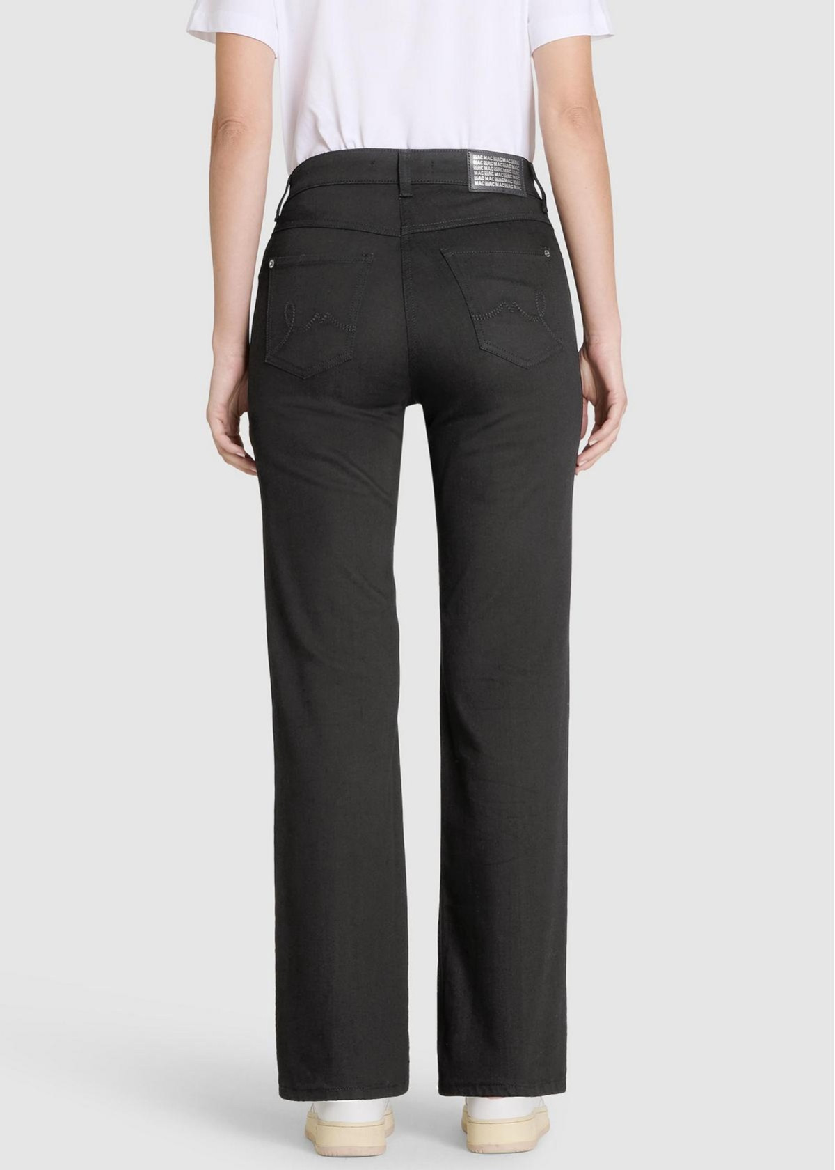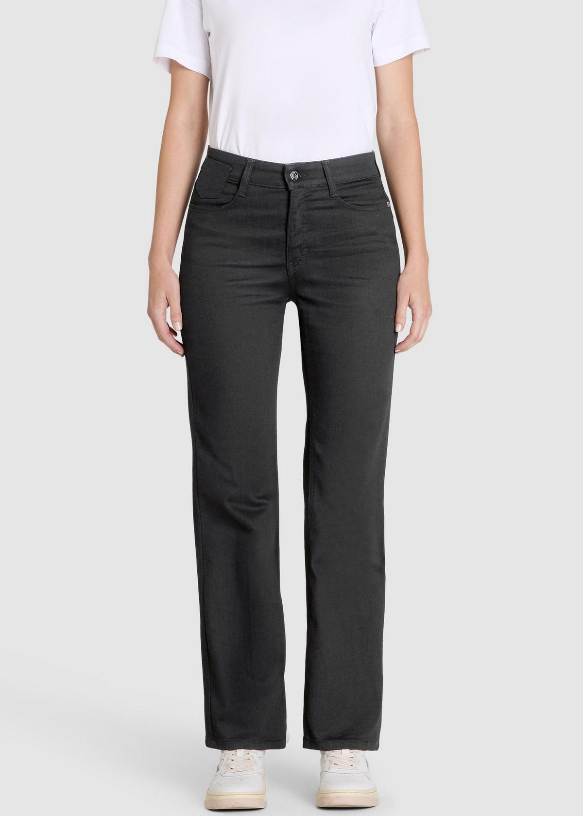 Pernera recta, bajo acampanado Silueta estilizada Cintura ajustada y alzada Cintura cómoda Cinco bolsillos