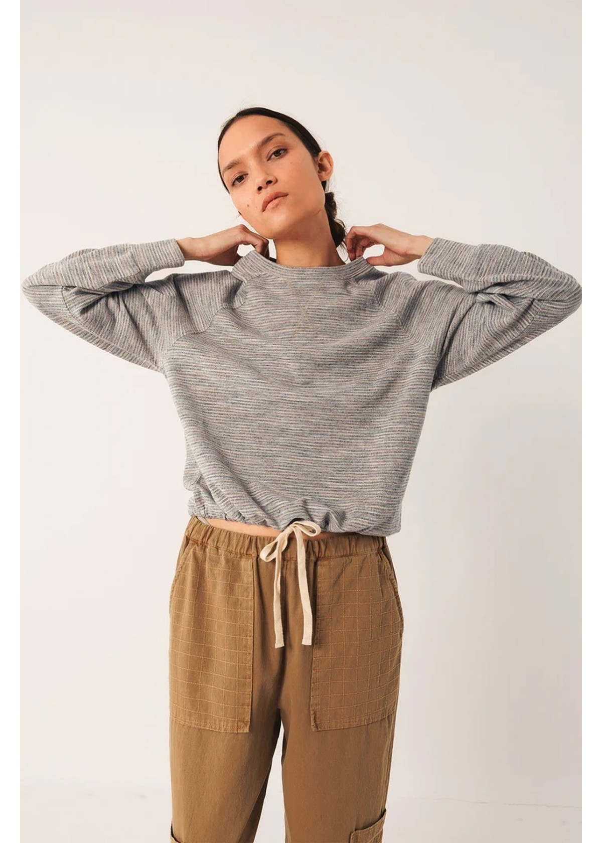 • Manga de corte ranglan • Cintura ajustable mediante lazada • Tejido de piqué multicolor con algodón • Fit relajado: Diseñado para que siente ligeramente holgado