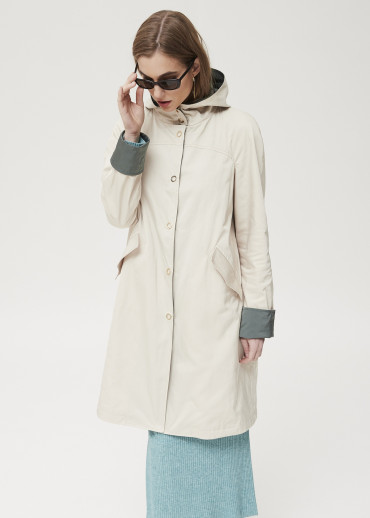 Abrigo técnico waterproof, bicolor con capucha, bolsillos de tapeta.