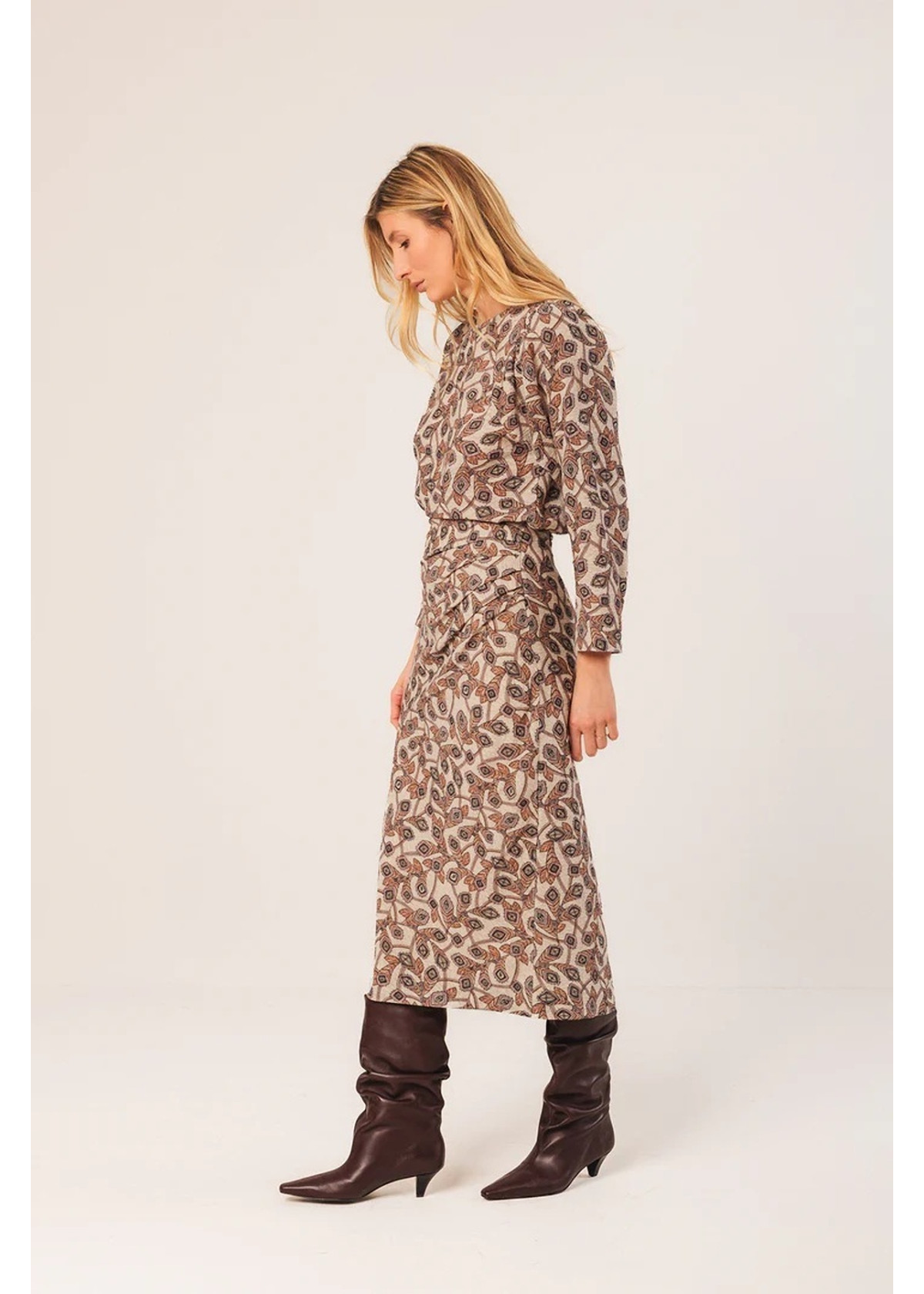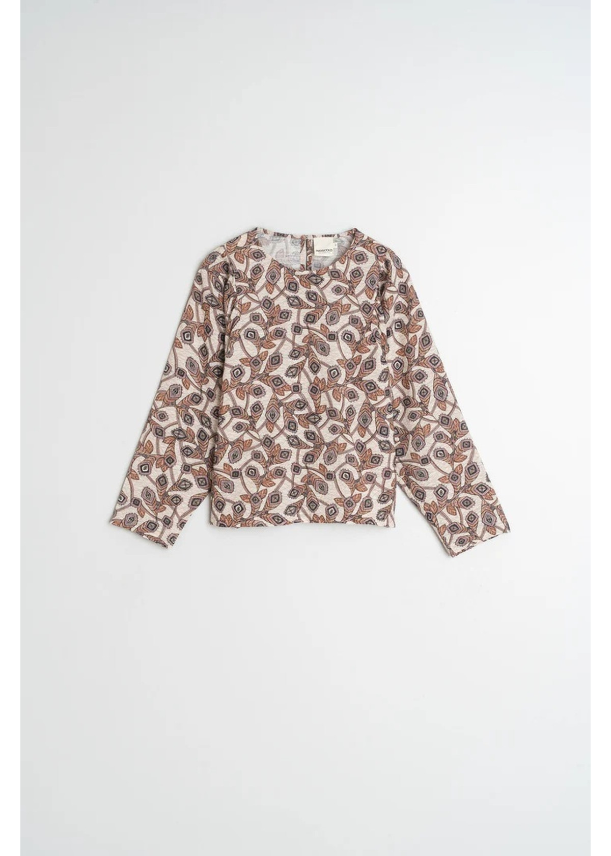 • Hombro encajado y manga con mucho volumen que se estrecha en el puño • Cuello redondo con lágrima y cierre de botón en la parte trasera • Tejido en gasa de algodón crepado y print digital de inspiración batik • Fit relajado: Diseñado para que siente ligeramente holgado
