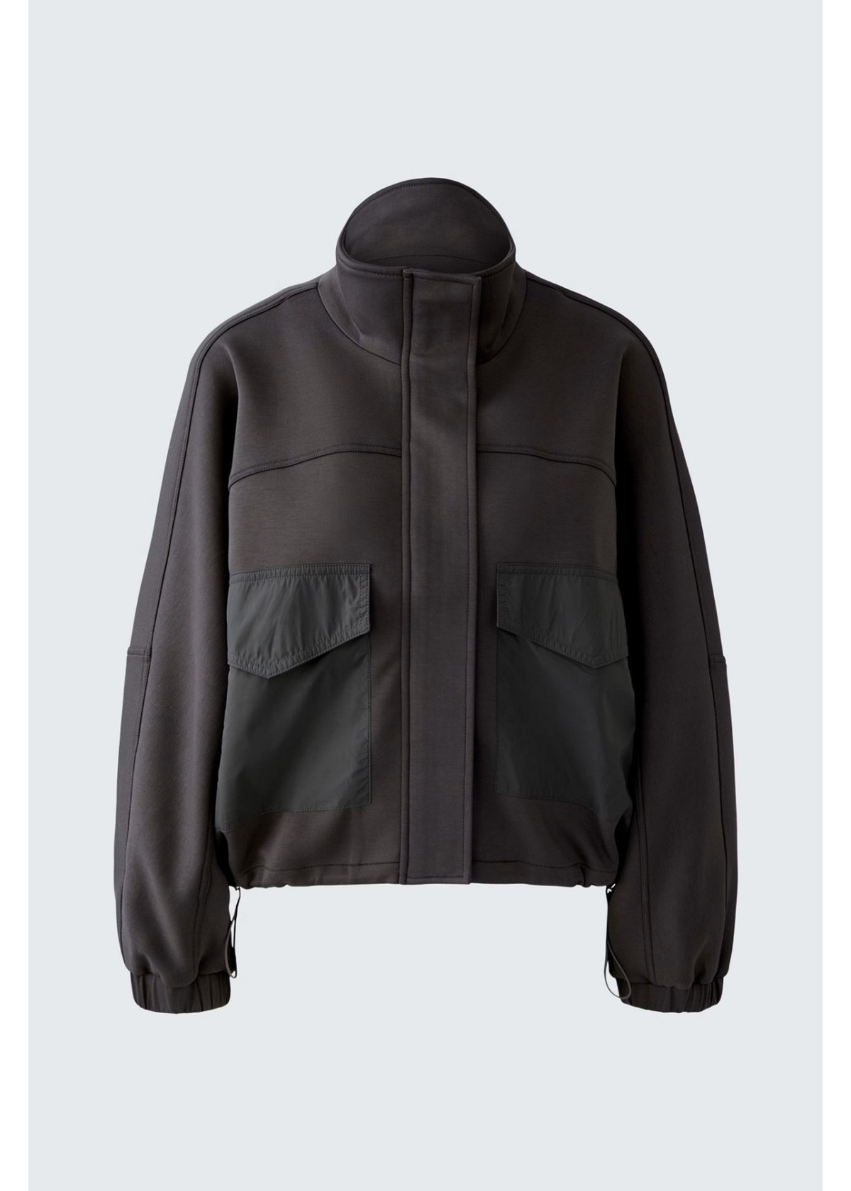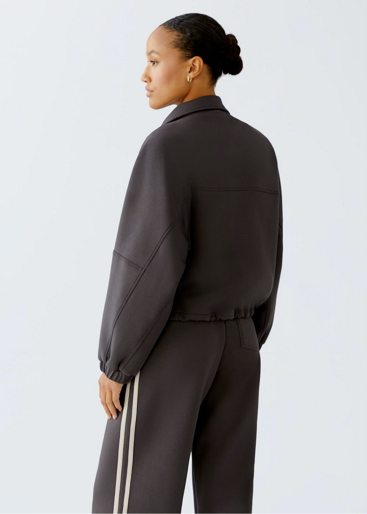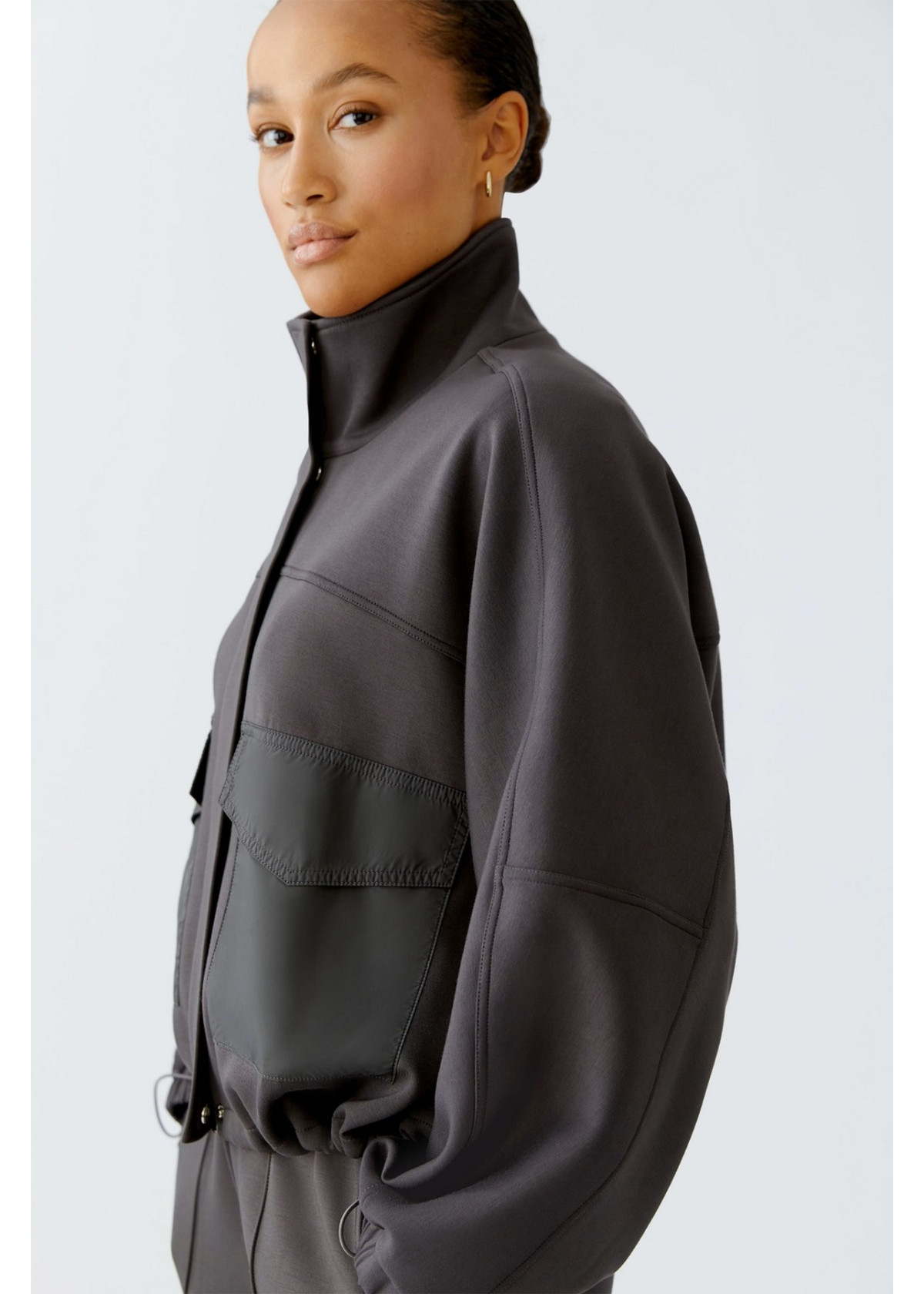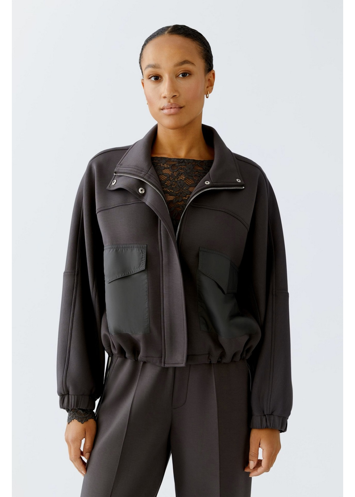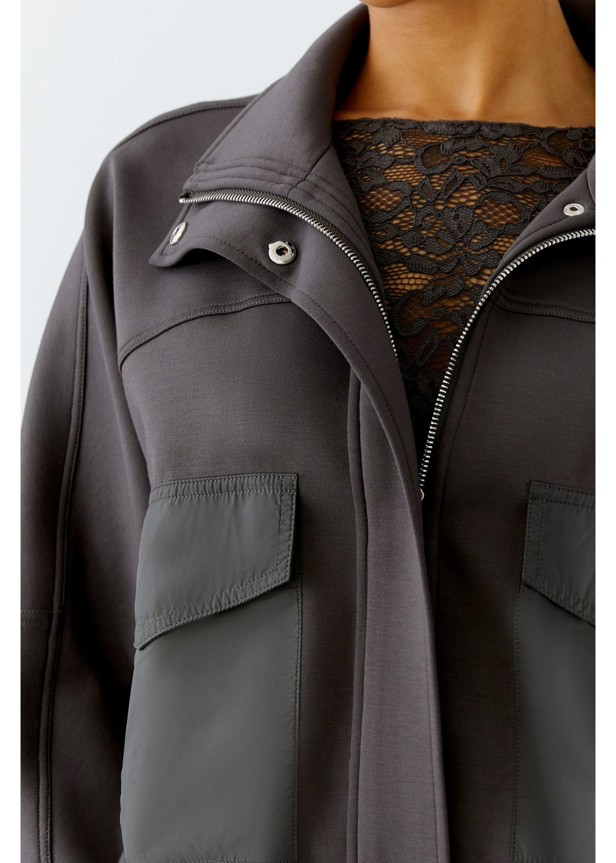 Chaqueta informal de neopreno con corte moderno y bolsillos de parche a tono. Los tejidos de neopreno se caracterizan por una parte superior similar al neopreno y una parte inferior similar al jersey con un tacto muy suave. Corte oversize, largo regular. Cuello alto con tapeta de botones a presión y cremallera oculta. Bolsillos de parche con solapa de nailon. Cinturilla con cordón elástico y topes metálicos de alta calidad para ajustar el ancho.