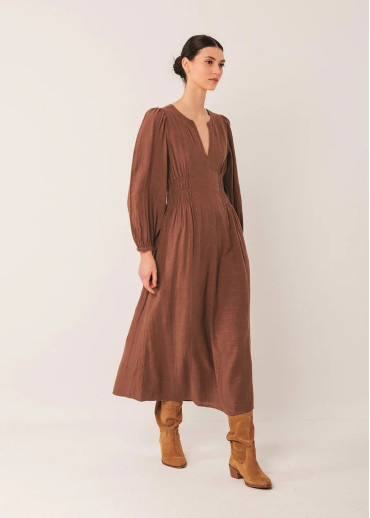 • Hombro encajado y manga con mucho volumen con puño engomado • Cuello redondo acabado en V • Laterales de cintura engomados • Tejido en gasa de algodón crepado • Slim fit: Diseñado para llevar ajustado