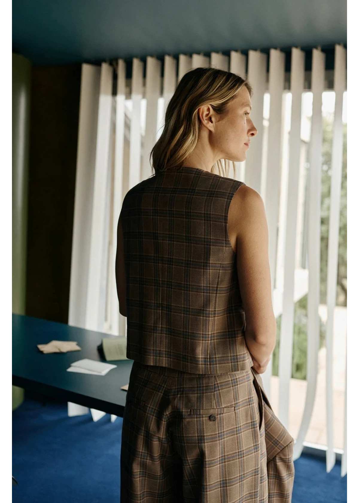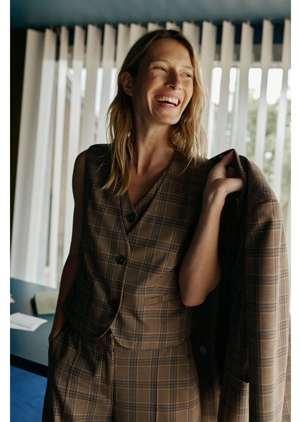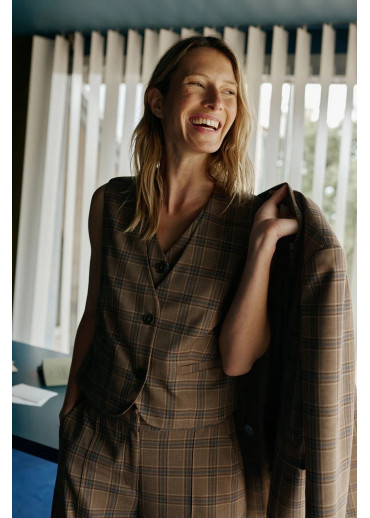 • Hombro encajado y cuello en forma de V con aspecto de doble cruce y cierre abotonado • Bolsillos de ojal en la parte delantera • Tejido con fibras recicladas, viscosa y elastano en cuadro tartán. • Regular fit: Diseñado para llevar un fit estándar