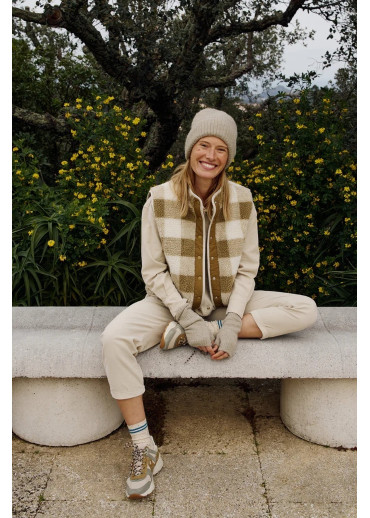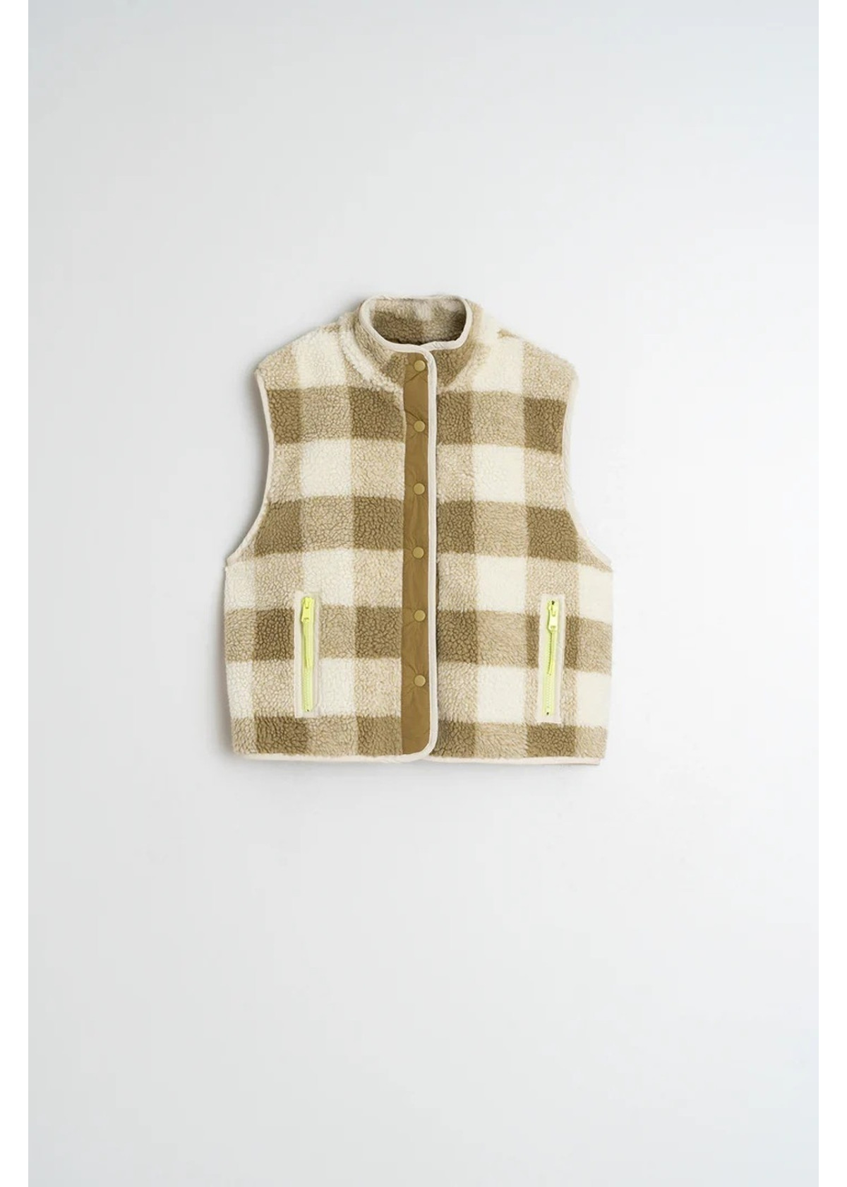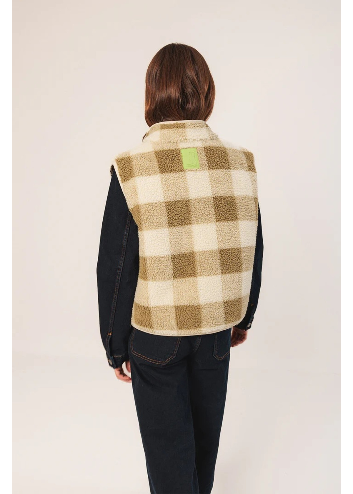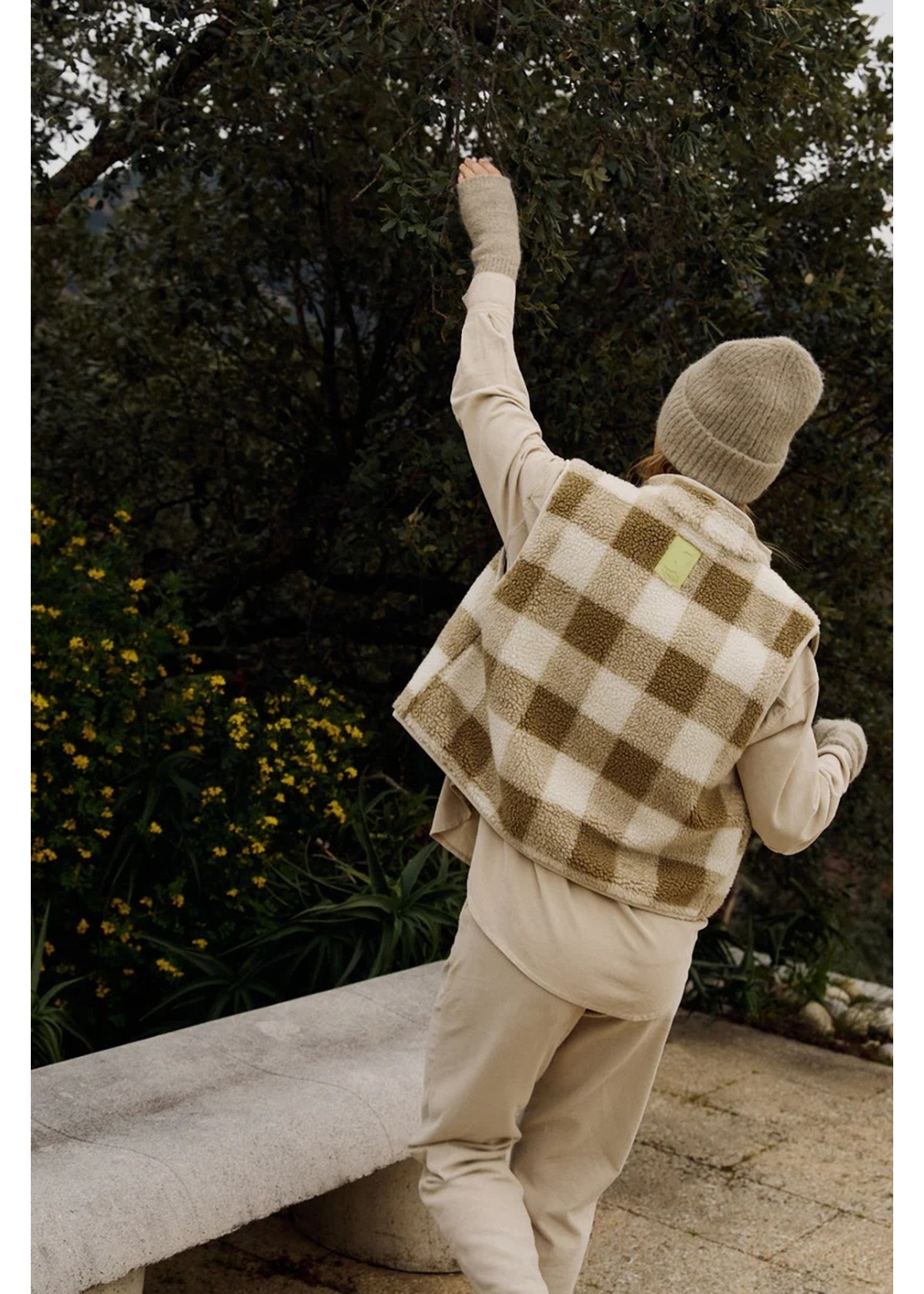 • Hombro recto y cierre frontal de snaps • Bolsillos de ojal con cremallera a contraste en la parte delantera • Tejido efecto teddy en maxi cuadro vichy • Fit relajado: Diseñado para que siente ligeramente holgado