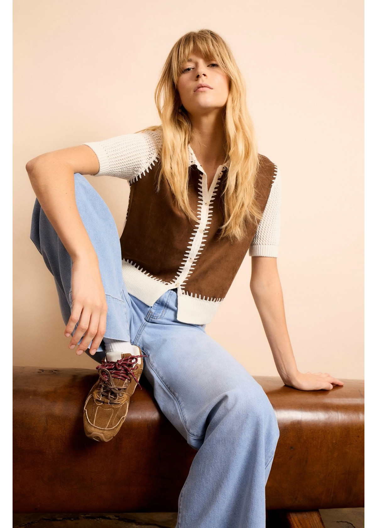 Corte estrecho, largo reducido Cuello y tapeta de botones con costuras a mano Manga corta con puños acanalados Borde acanalado reforzado con elastano
