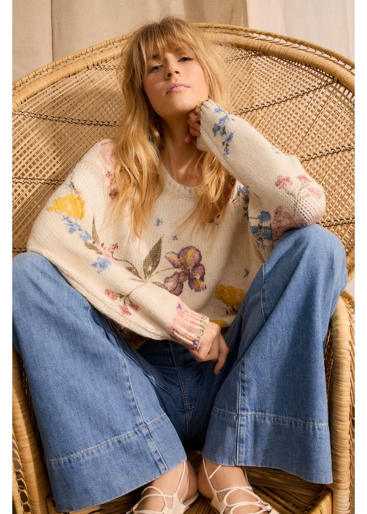 Moderno look vintage: puntadas caídas diseñadas para un efecto desgastado. Suave mezcla de algodón con estampado floral integral de efecto lavado. Corte informal, largo normal, parte delantera más corta. Cuello redondo con puños de punto. Hombro francés desplazado hacia adelante, con caída holgada hasta la manga larga. Puños y bajo acanalados.