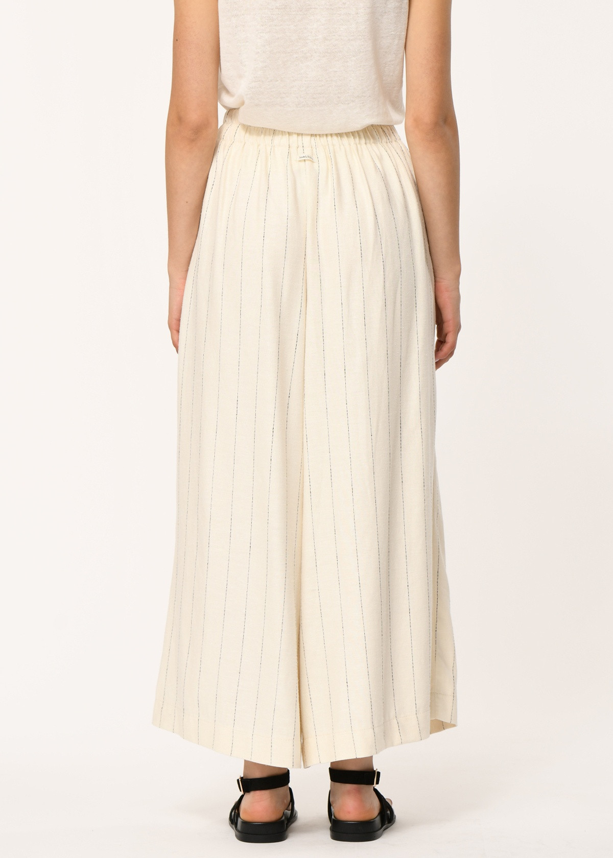 Pantalón cruzado a rayas, pernera ancha, largo 7/8, cintura alta, cinturilla elástica en la parte trasera, bolsillos invisibles en la costura lateral