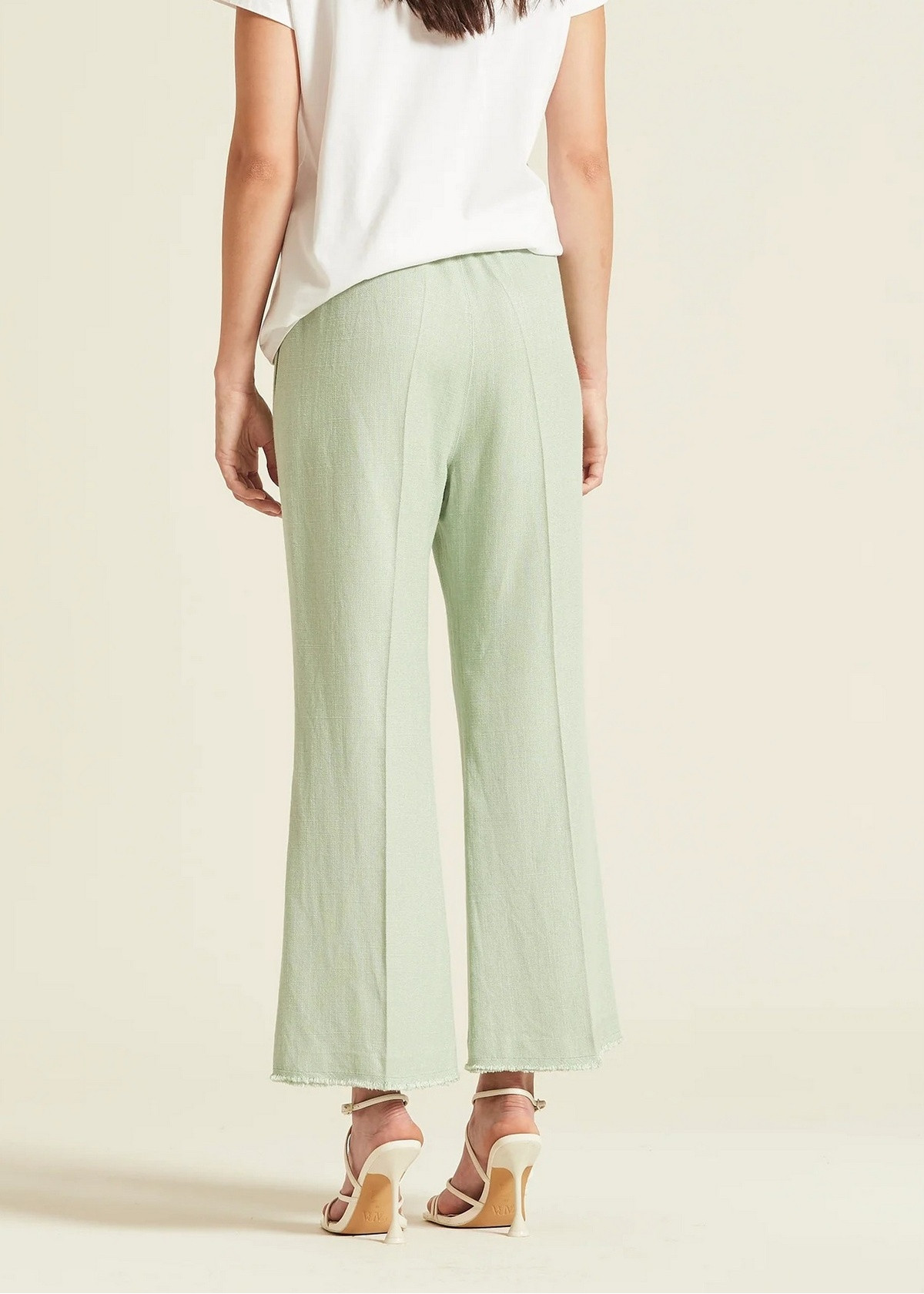 Pantalón confeccionado en tejido de lino rústico de textura natural y ligera. Presenta un diseño de corte recto y relajado con cintura elástica que garantiza el máximo confort. Detalle de bolsillos laterales discretos y bajo con acabado deshilachado sutil.