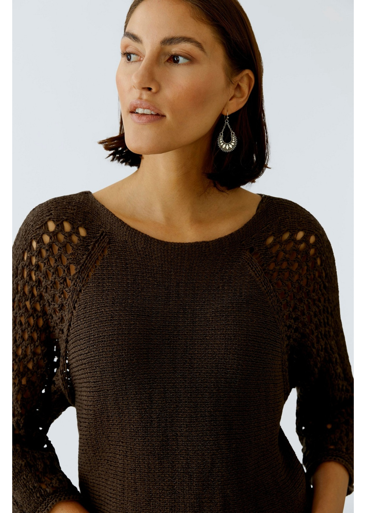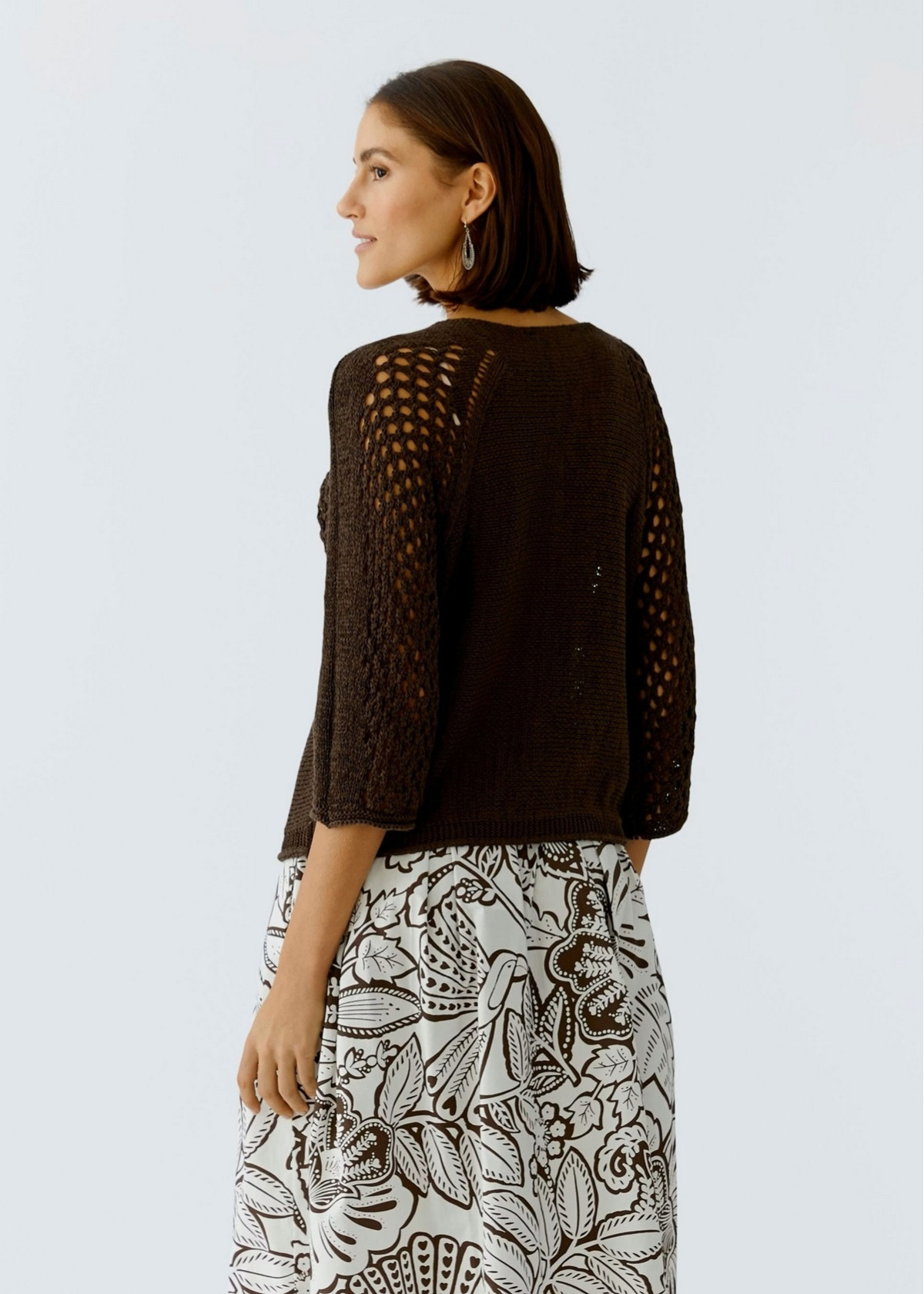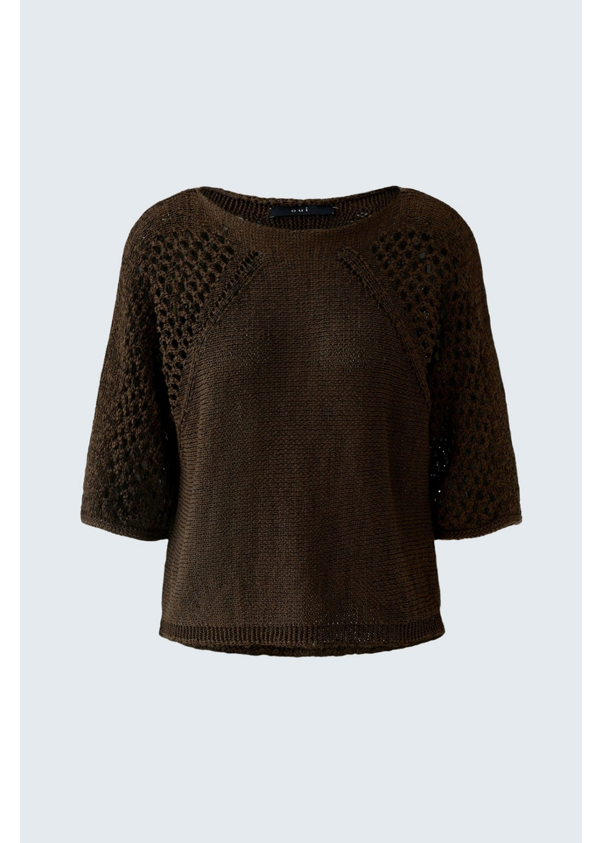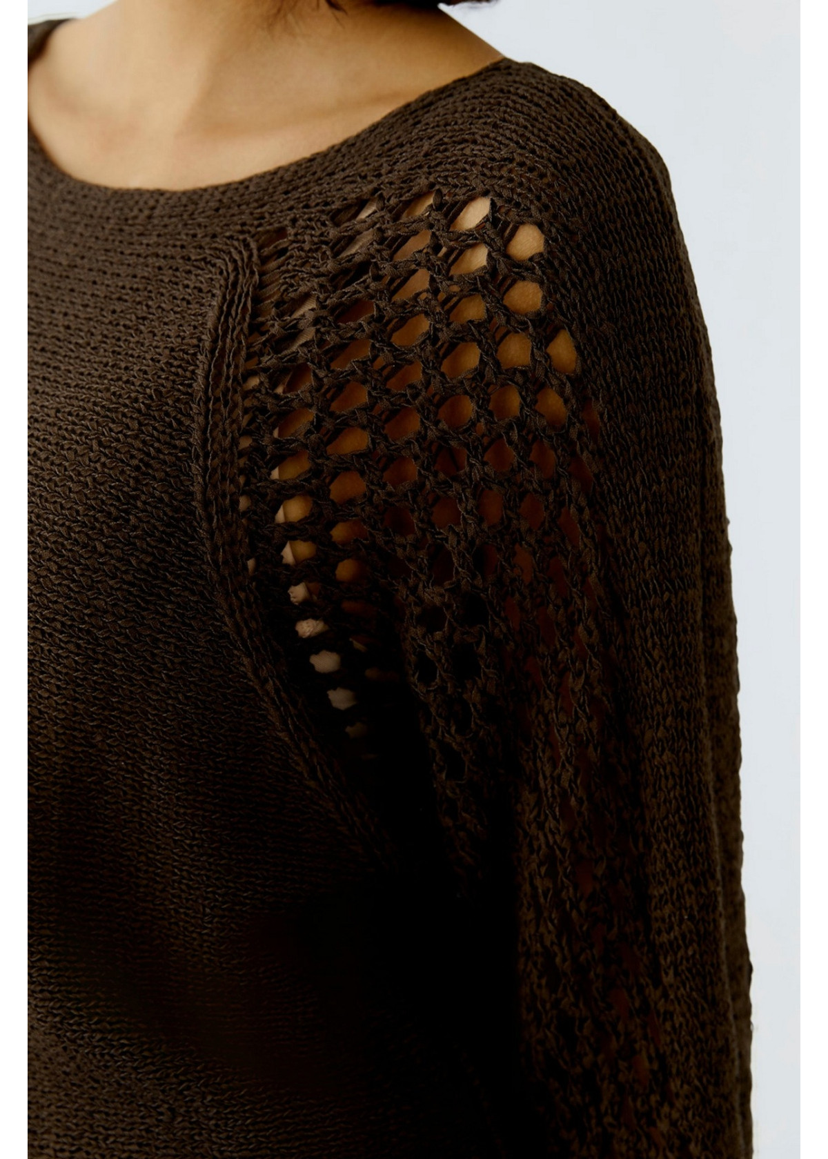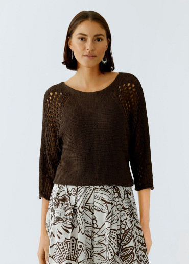 Jersey de punto de cinta veraniego: la forma raglán se acentúa con la estructura de red semitransparente tejida en el interior.