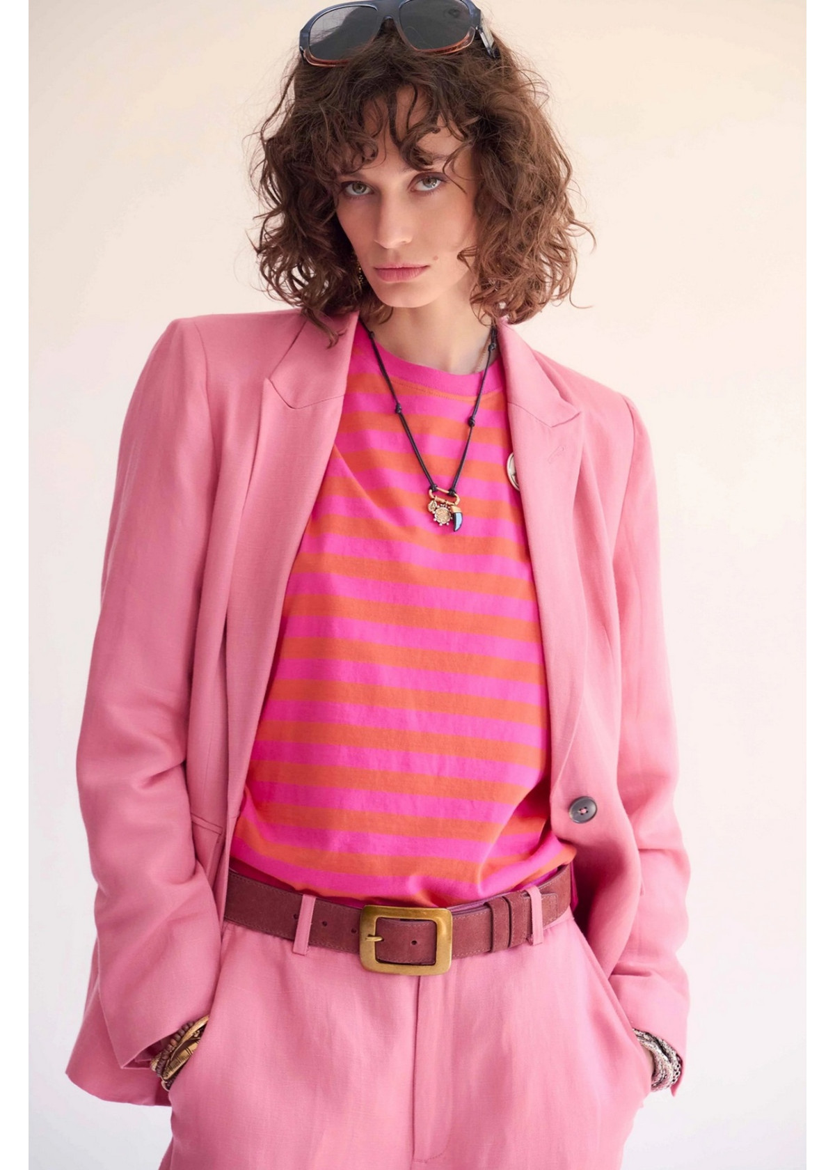 Reinventa la sastrería con un look chic y relajado a la vez. Su corte recto, ligeramente estructurado, realza la figura sin dejar de ser cómodo. Confeccionada en una fluida mezcla de lino, destaca por su impecable caída y su estilo fácil de llevar.
