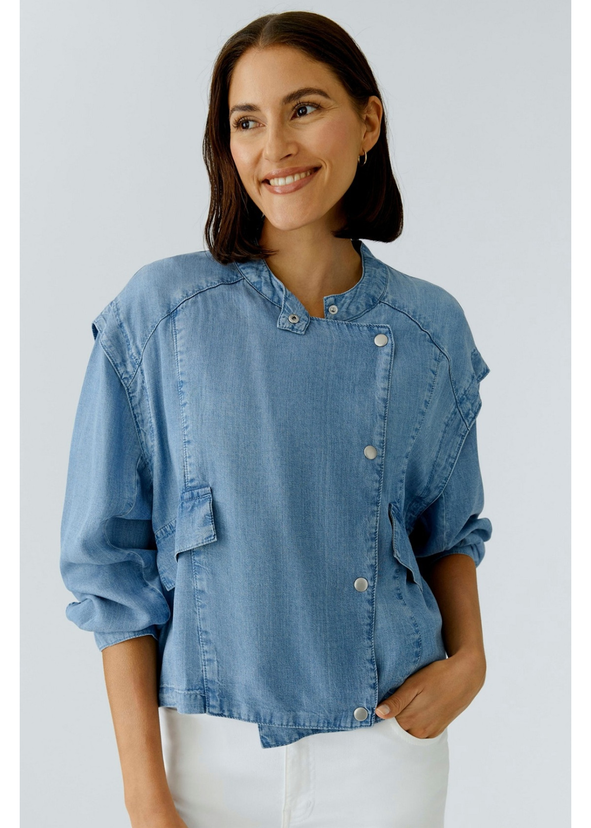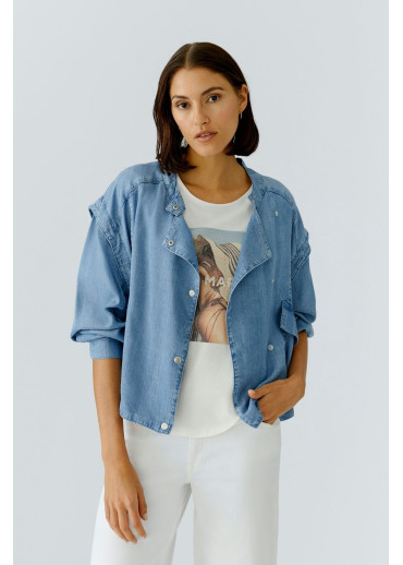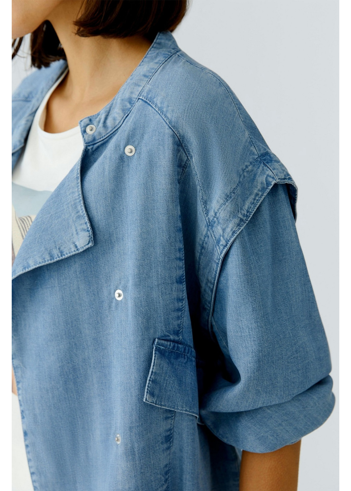Hombros superpuestos, panel sobre la manga larga con puño y botón a presión, estilo chaleco