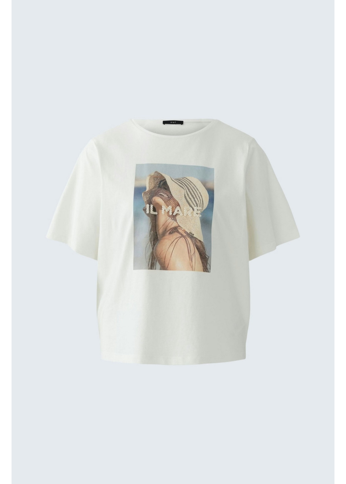 Camiseta con cuentas de cristal aplicadas a mano sobre letras estampadas
