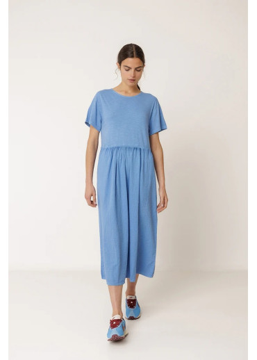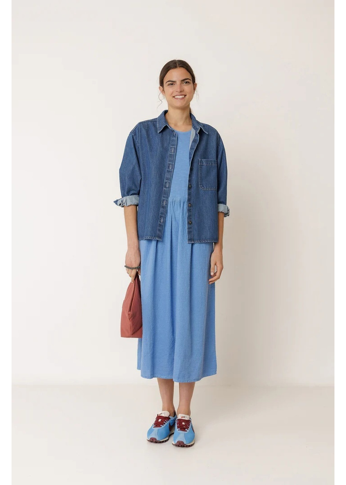 • Tejido combinado de punto flamé con dobby de algodón sostenible. Tinte en prenda.