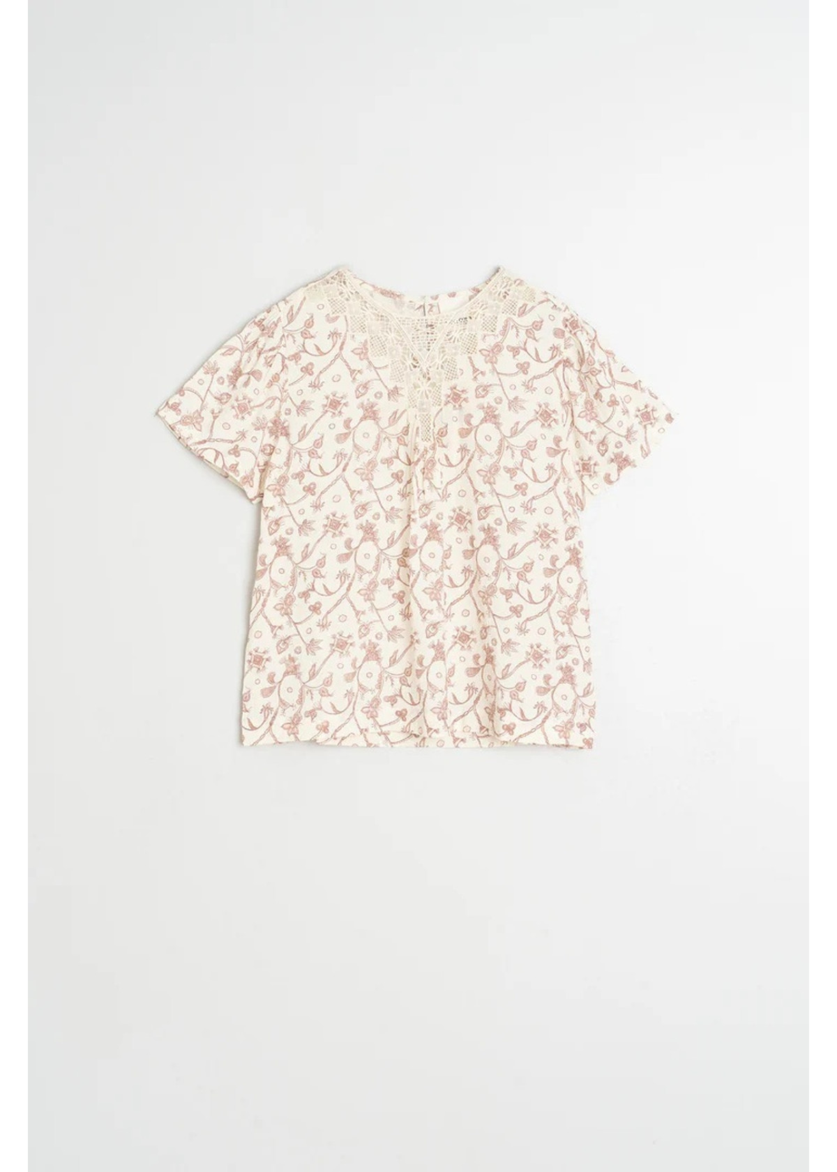 • Encaje insertado tipo bolillo elaborado manualmente.