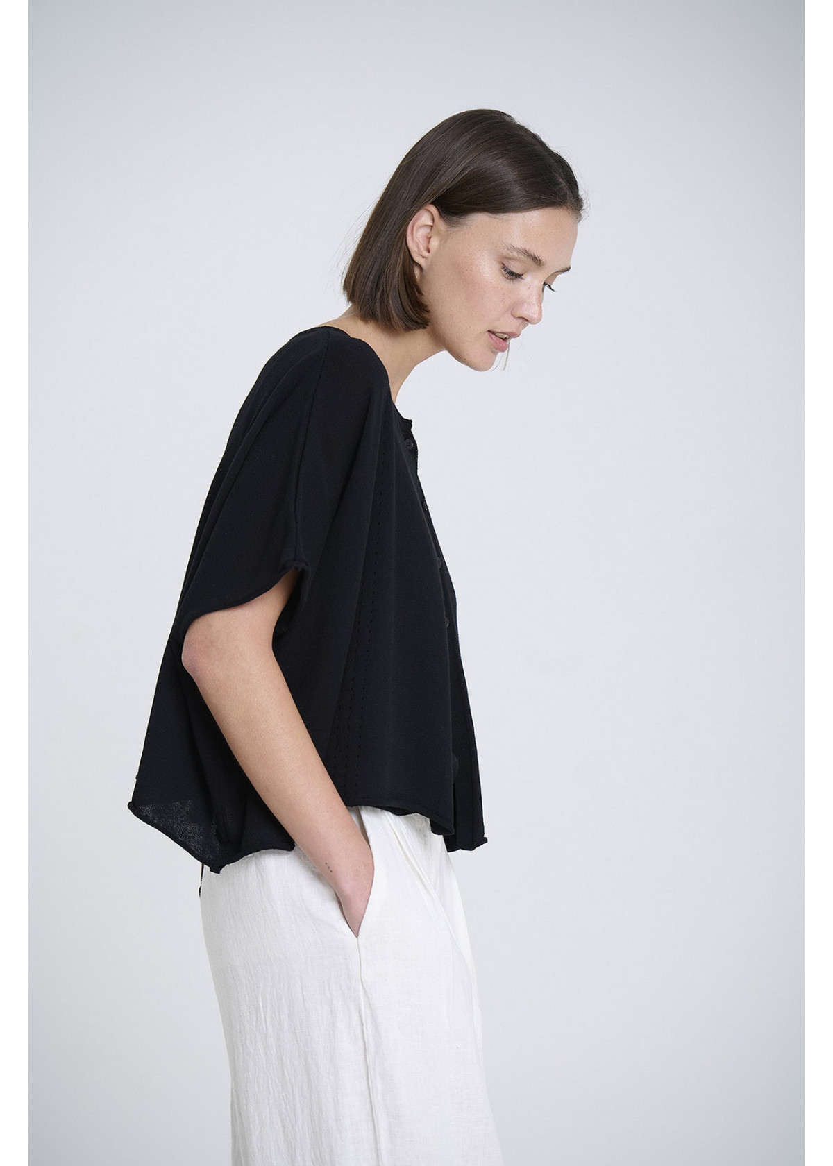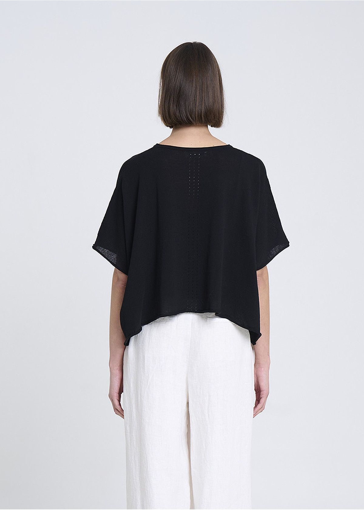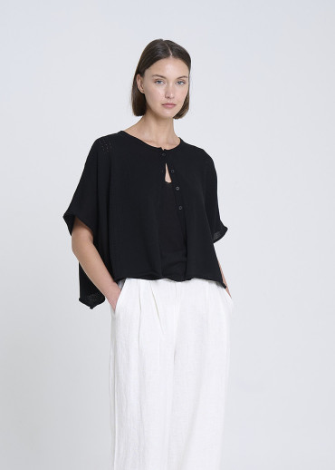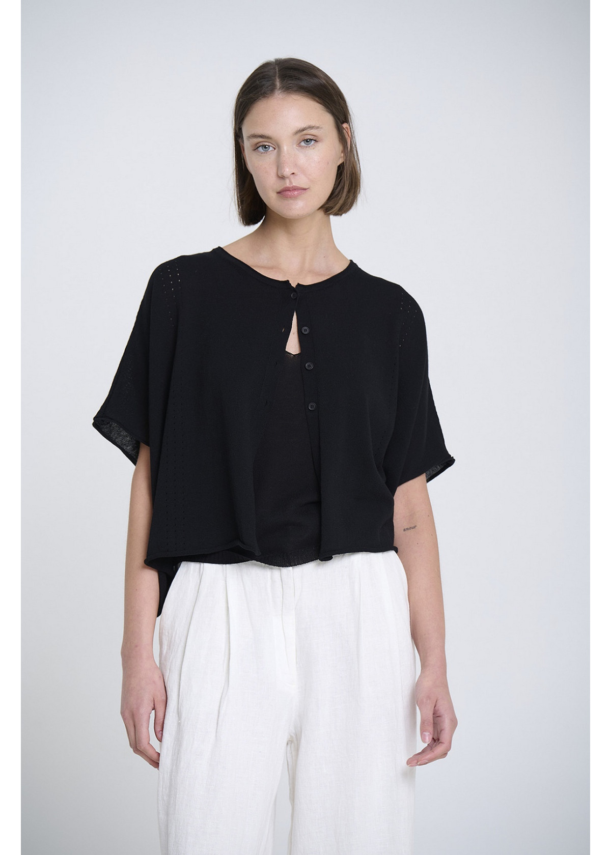 Chaqueta de punto fino oversize con escote redondo y cierre con botones. Tejida en Igualada con hilo de Italia.